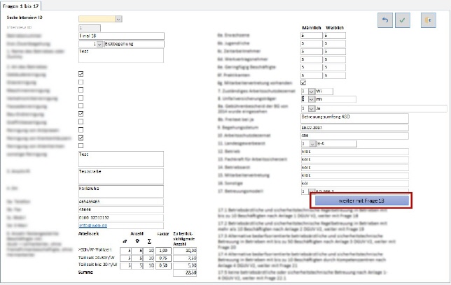 Eine Entscheidende Frage ist die Frage 17 (rot markiert), da hier im Interview über die Auswahl von fünf Möglichkeiten der weitere Verlauf des Interviews gesteuert wird. |