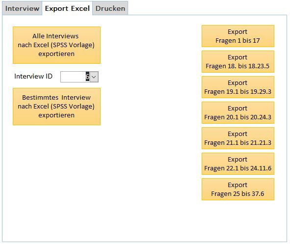 Auch die Export der Interviewdaten in das SPSS-Template wird über ein eigenes Formular gesteuert: |