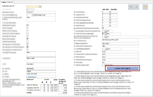 Eine Entscheidende Frage ist die Frage 17 (rot markiert), da hier im Interview über die Auswahl von fünf Möglichkeiten der weitere Verlauf des Interviews gesteuert wird.