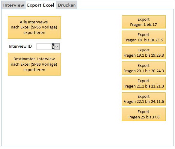 Auch die Export der Interviewdaten in das SPSS-Template wird über ein eigenes Formular gesteuert: